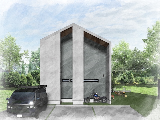 雨に濡れない、バイクが映える玄関ポーチ