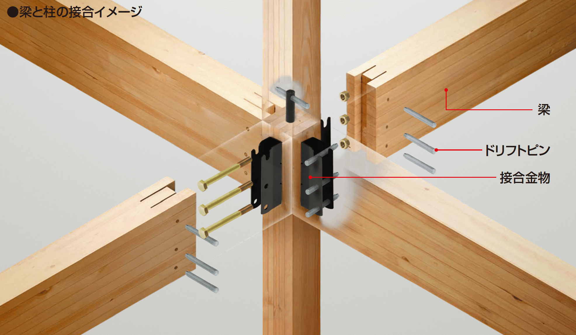 高強度の構造材と接合金物を採用フィアスホームでは、主要構造材にエンジニアリングウッド(構造用集成材)を標準採用。 |
